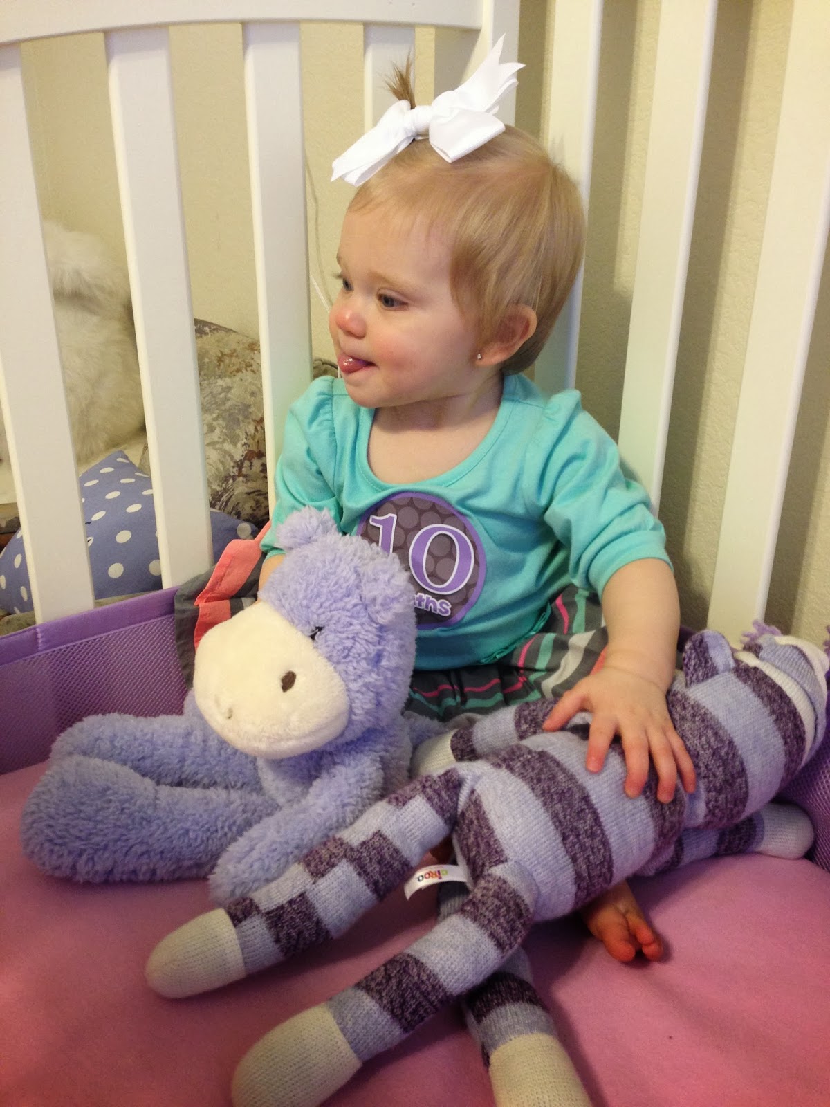 We have had a few setbacks in eating and sleeping this last month, but I think it is due to her cutting about 5 teeth right now. We pretty much had her completely off baby food and on table food for several days, but then she decided no more table food. So as of right now, we are doing a mixture of both. For the last few weeks she has been much more restless at night than she has been in months. Again, I assume this is due to teeth. Overall she is still a pretty good eater and sleeper.